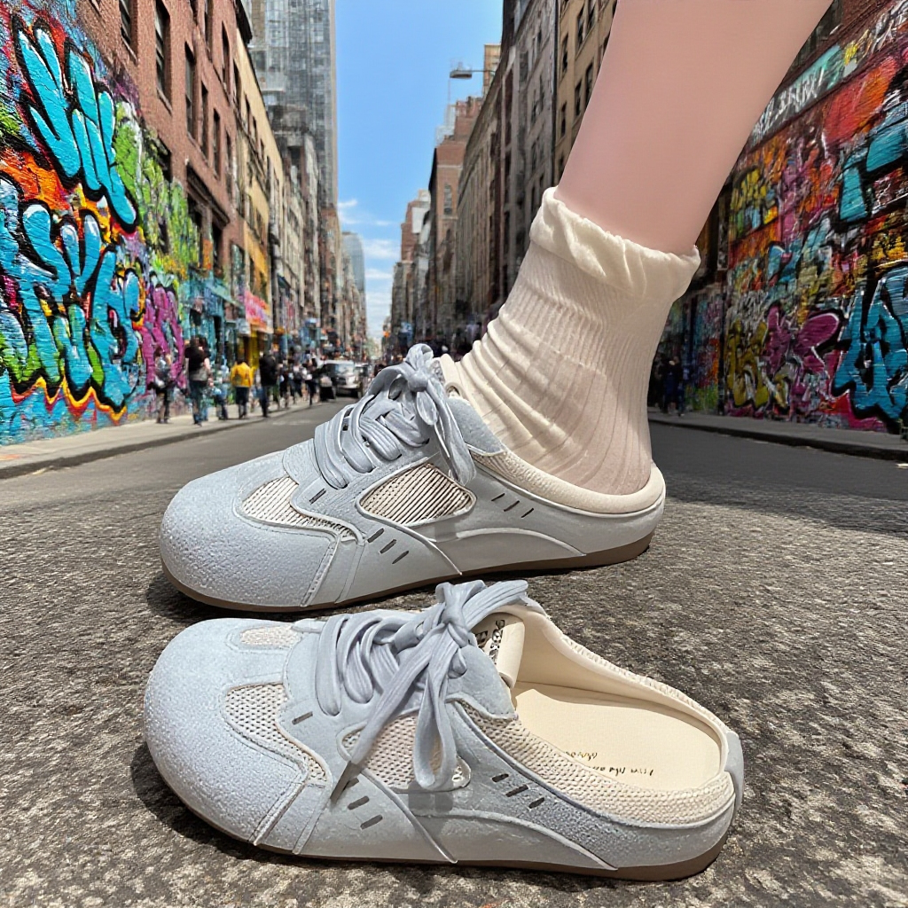 厚底メッシュのデクサンシューズ、夏用のつま先が閉じたハーフスリッパ、2025年の新作スニーカー、スリッポンカジュアルシューズ、ビルケンシュトック、サンダル